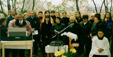 | Príležitostnú kázeň povedal p.Milan Hromník. Pri sv.omši spieval spevácky zbor z Pečeniad. Po sv.omši sa všetci v sprievode odobrali k obnovenému hrobu zomrelej grófky, kde zotrvali v tichej modlitbe. Množstvo zažatých sviec a kytice na upravených hroboch, bolo pekným svedectvom, že Pečeňadčania ani po 100 rokoch na svoju dobrodinku nezabudli. Pri tejto príležitosti bola na hrobe p.grófky odhalená pamätná tabuľa s nápisom: |