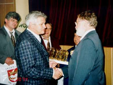 Všetci účastníci slávnostného obeda prevzali z rúk starostu obce Pečeňady suvenír s erbou obce, zhotovaný k tejto slávnostnej príležitosti a brožúru ”Pečeňadská pamätnica 1899 – 1999.”, ktorú spracoval páter Milan Hromník, SJ. |