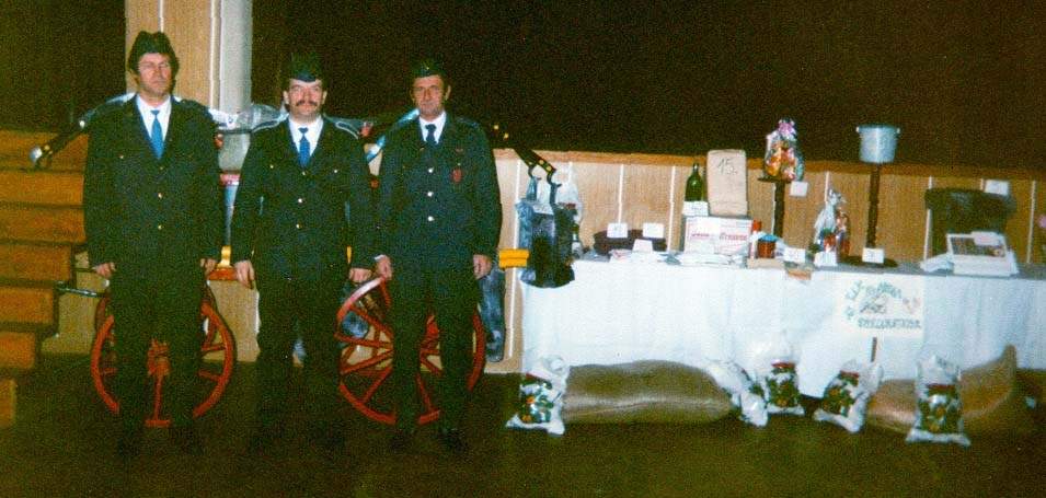 | 30.4.1995 | - Uskutočnila sa oprava striekačky M-8. Po ukončení opravy sa vykonala skúška. Zúčastnení: Blahuta Jozef, Blahuta Jaroslav, Mužila, Moravanský Marek, Kostka Jozef, Troják Pavol, Šugra Ivan, Štibraný Ľudovít, Pražan Peter. |
